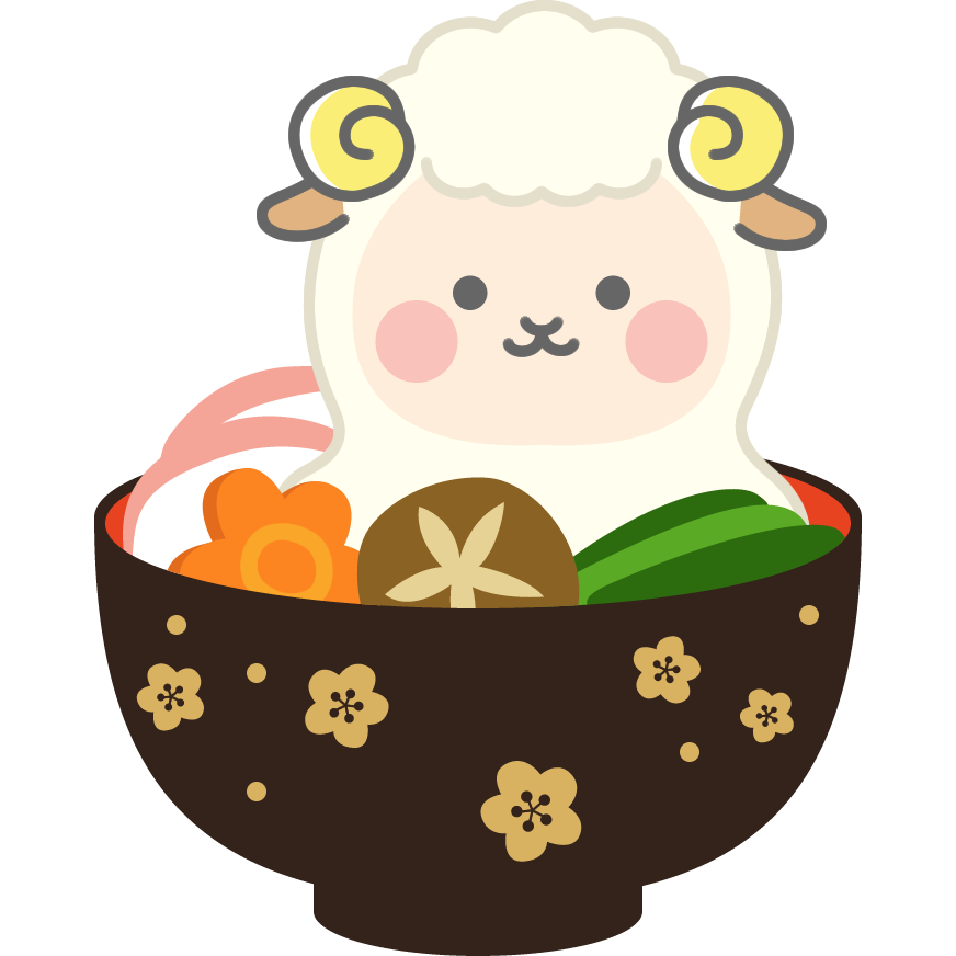 お雑煮の餅になった羊のイラスト